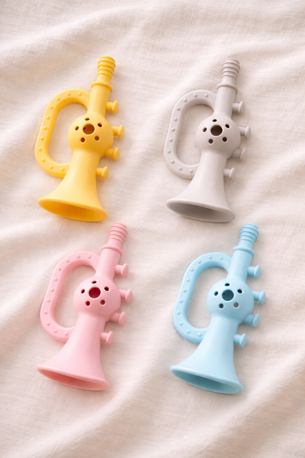 The Baby Trumpet Teether Rattle Toy is a fun and safe toy designed to soothe babies during the teething stage. The soft, chewable material helps massage sore gums while the trumpet design makes it easy for little hands to hold. The small holes and textured surfaces provide gentle gum stimulation, helping relieve discomfort when new teeth start to grow.