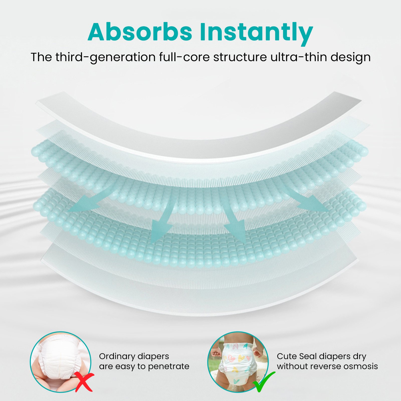 Quickly locks in wetness to keep baby dry for longer.