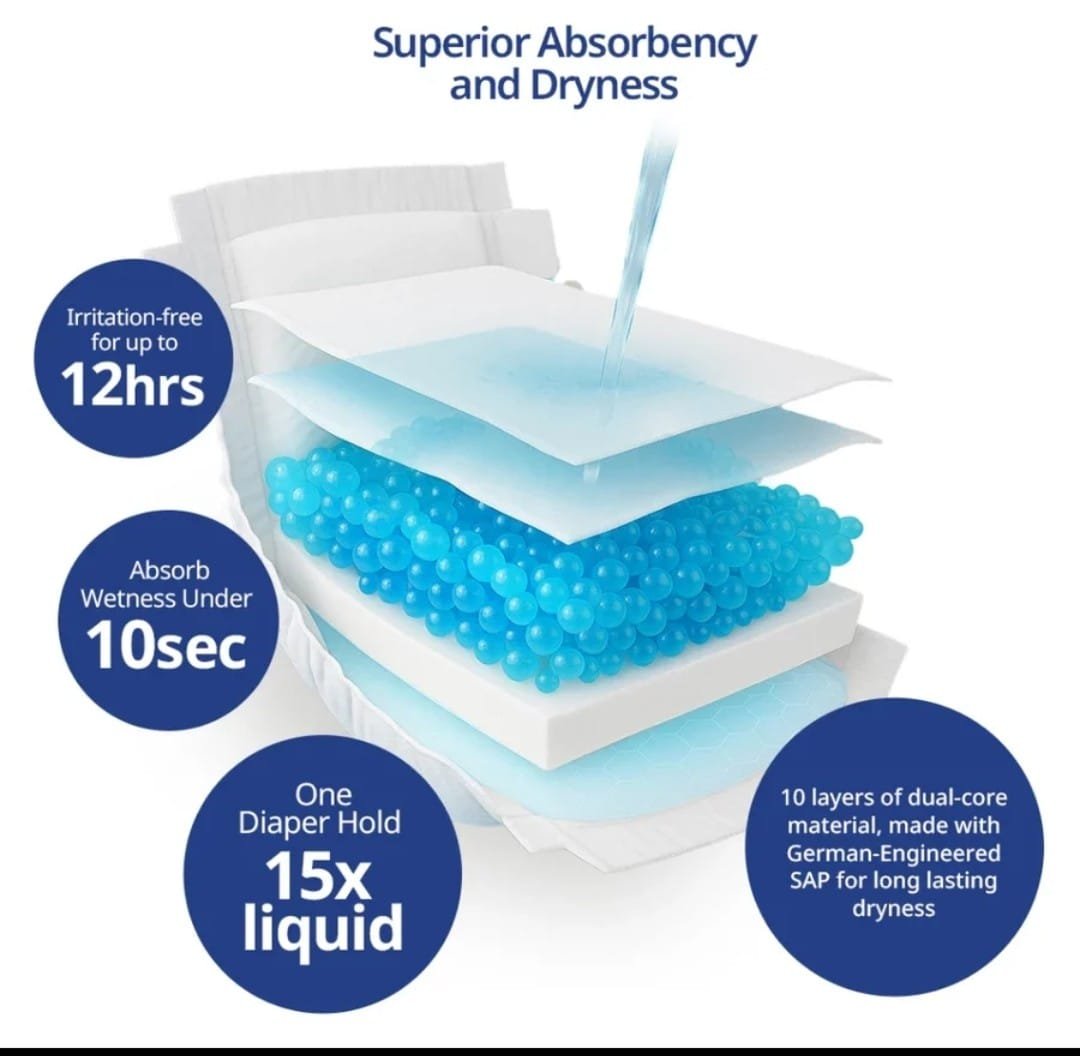 Quickly locks in wetness to keep baby dry for longer—day or night.