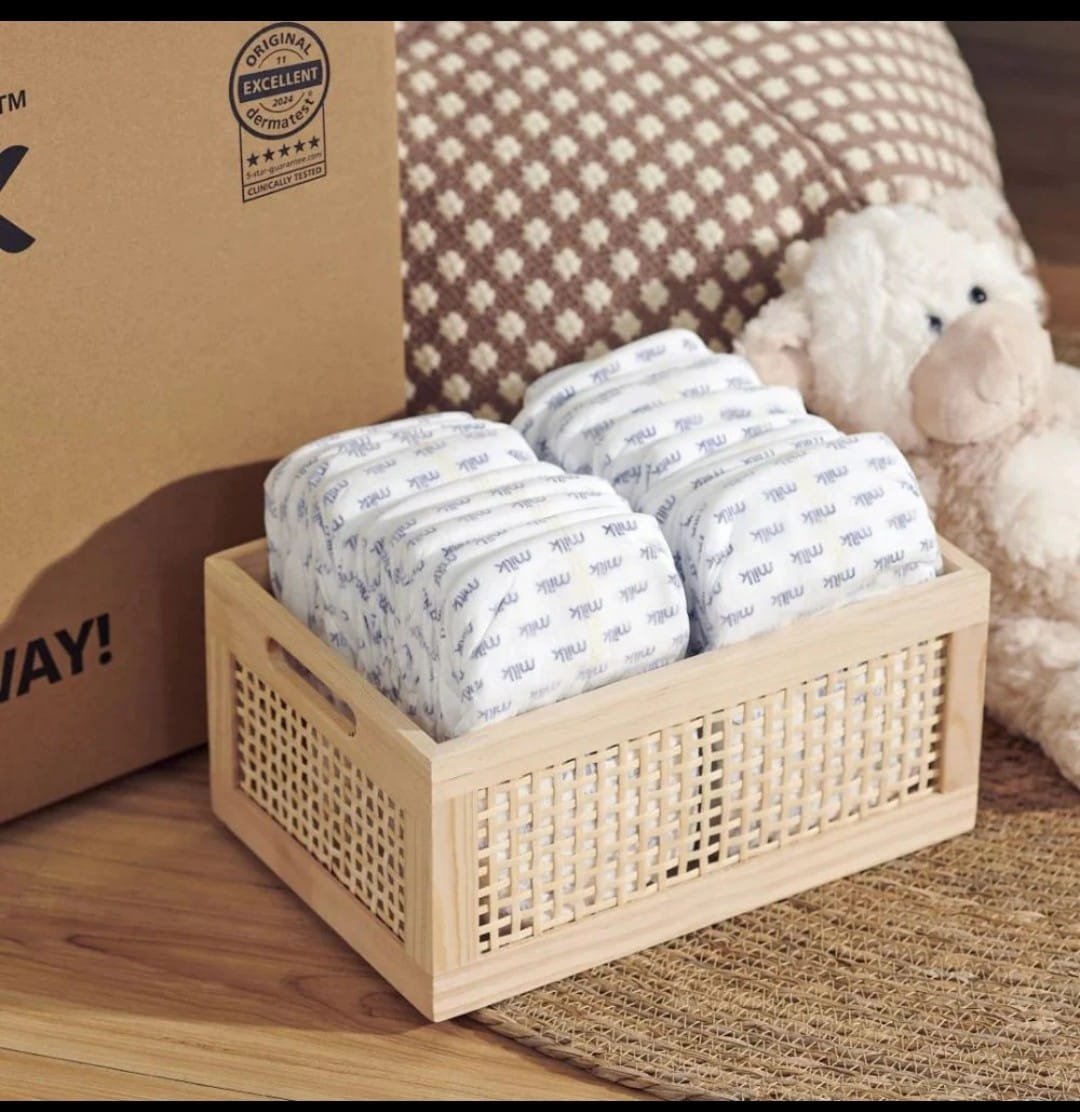 Milk Organic Baby Diapers are made for delicate skin. Milk Organic Baby Diapers feature a soft organic cotton topsheet with a highly absorbent, leak-proof core to keep babies dry and comfortable. Free from harsh chemicals and designed to breathe, they help reduce irritation while providing reliable day-and-night protection—so your baby stays happy, and you stay worry-free.