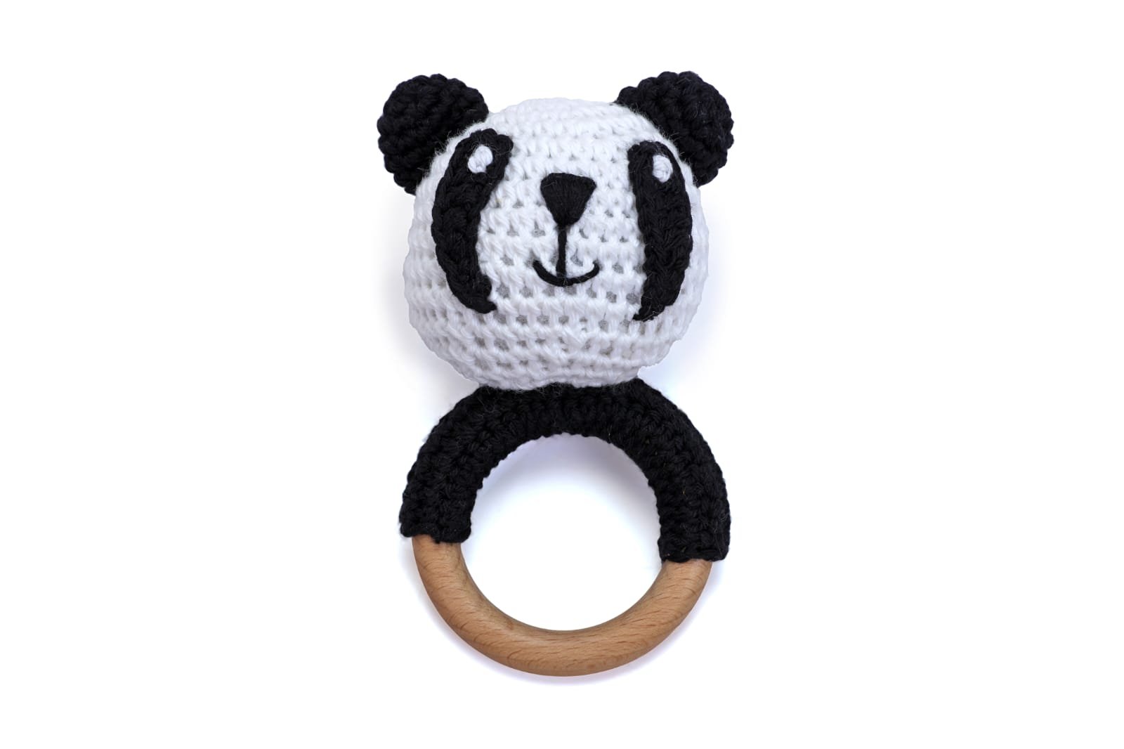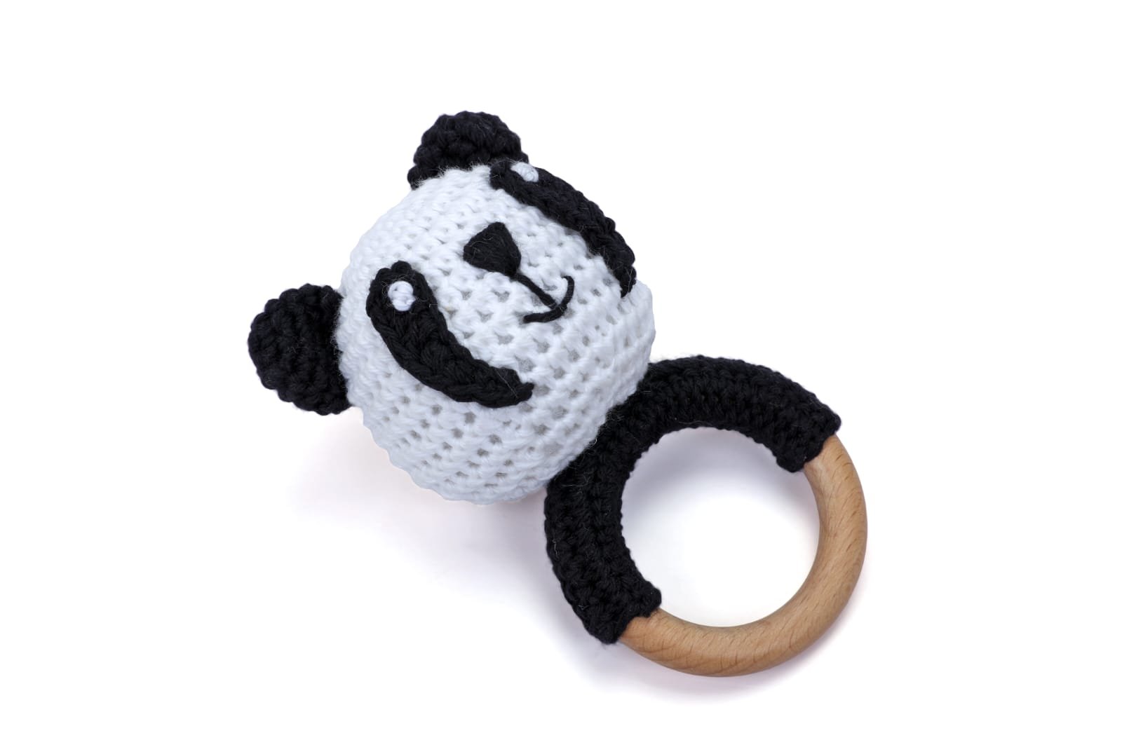 Crochet Panda Wooden Teether Rattle