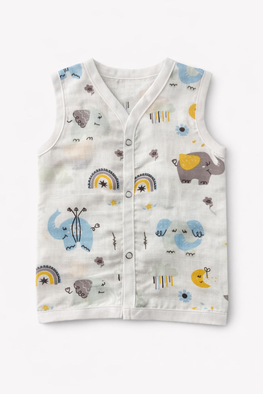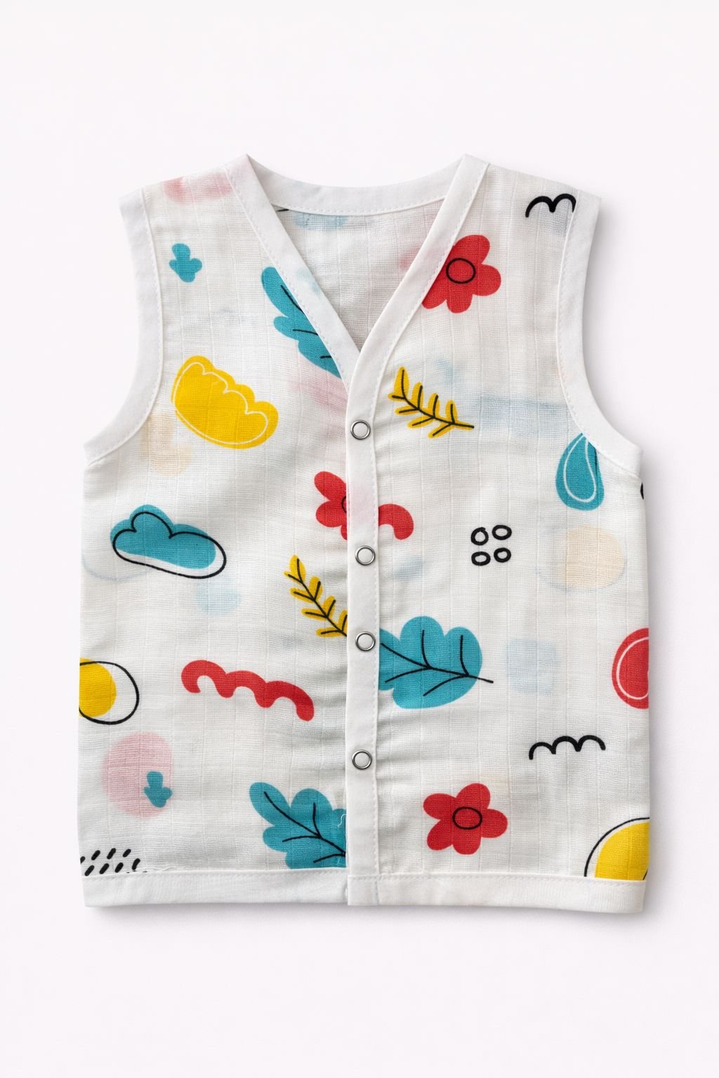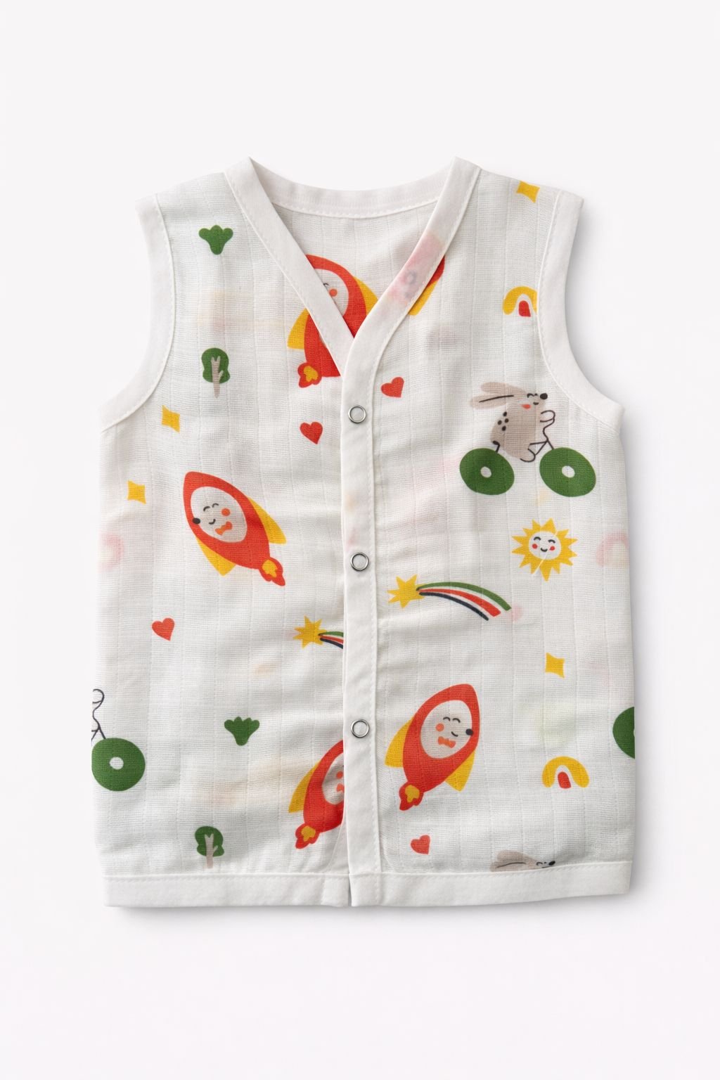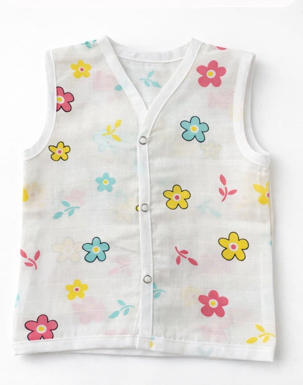 Crafted from ultra-soft, breathable muslin cotton—a lightweight and gentle fabric–this jhabla keeps your newborn comfortable all day long. Designed especially for babies aged 0–3 months, it features a sleeveless silhouette that allows maximum airflow and easy movement. Available in multiple charming prints.