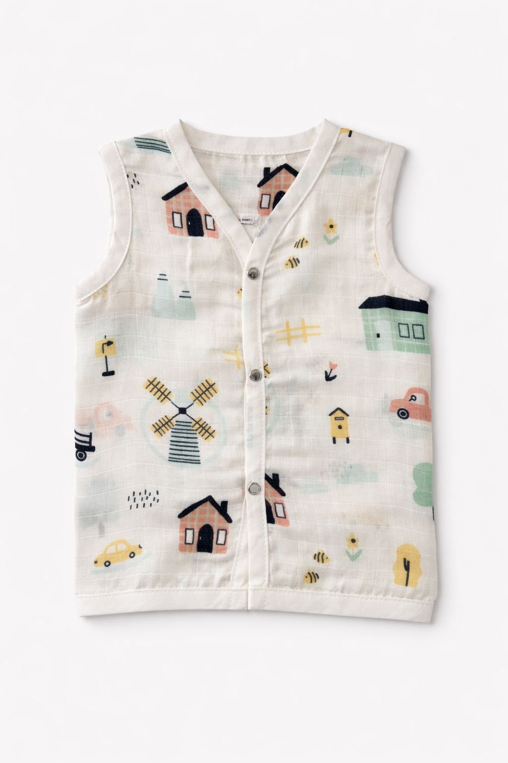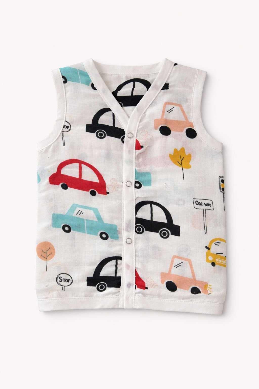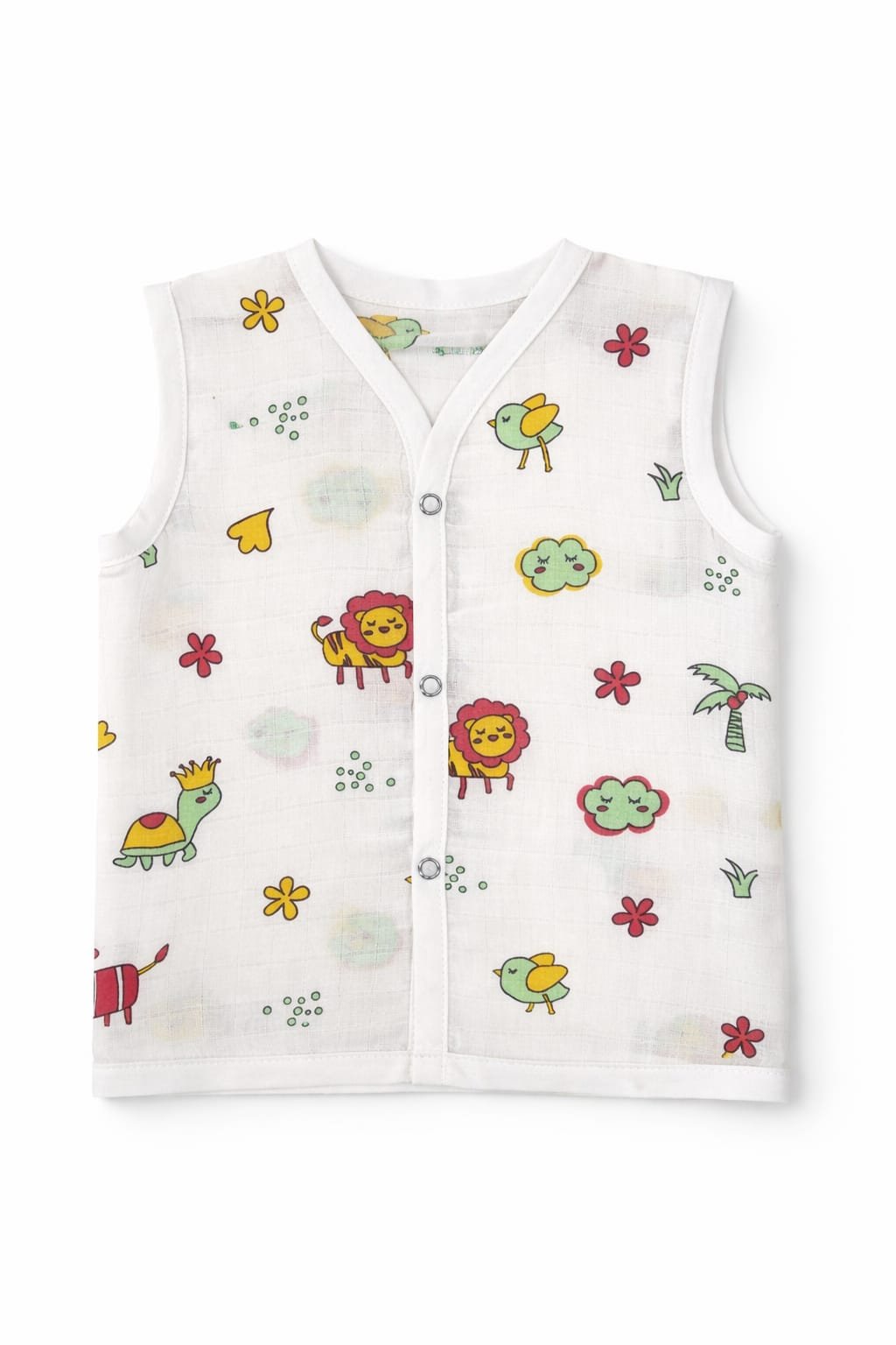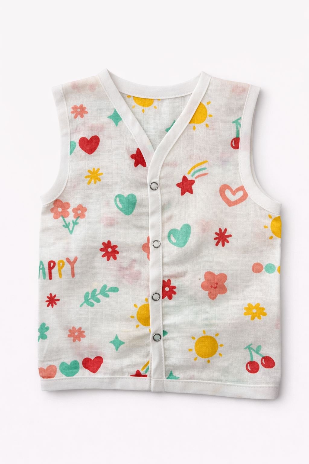 Crafted from ultra-soft, breathable muslin cotton—a lightweight and gentle fabric–this jhabla keeps your newborn comfortable all day long. Designed especially for babies aged 0–3 months, it features a sleeveless silhouette that allows maximum airflow and easy movement. Available in multiple charming prints.