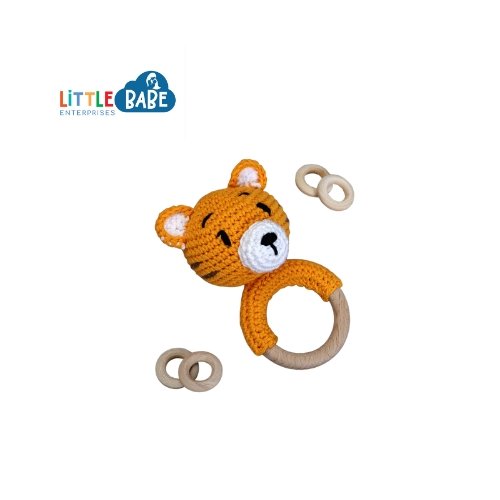 A playful handcrafted crochet tiger paired with a smooth wooden teething ring, designed to gently soothe sore gums and encourage early sensory play. Soft, lightweight, and easy to grasp, this adorable tiger teether is made from natural, baby-safe materials and is suitable from birth.